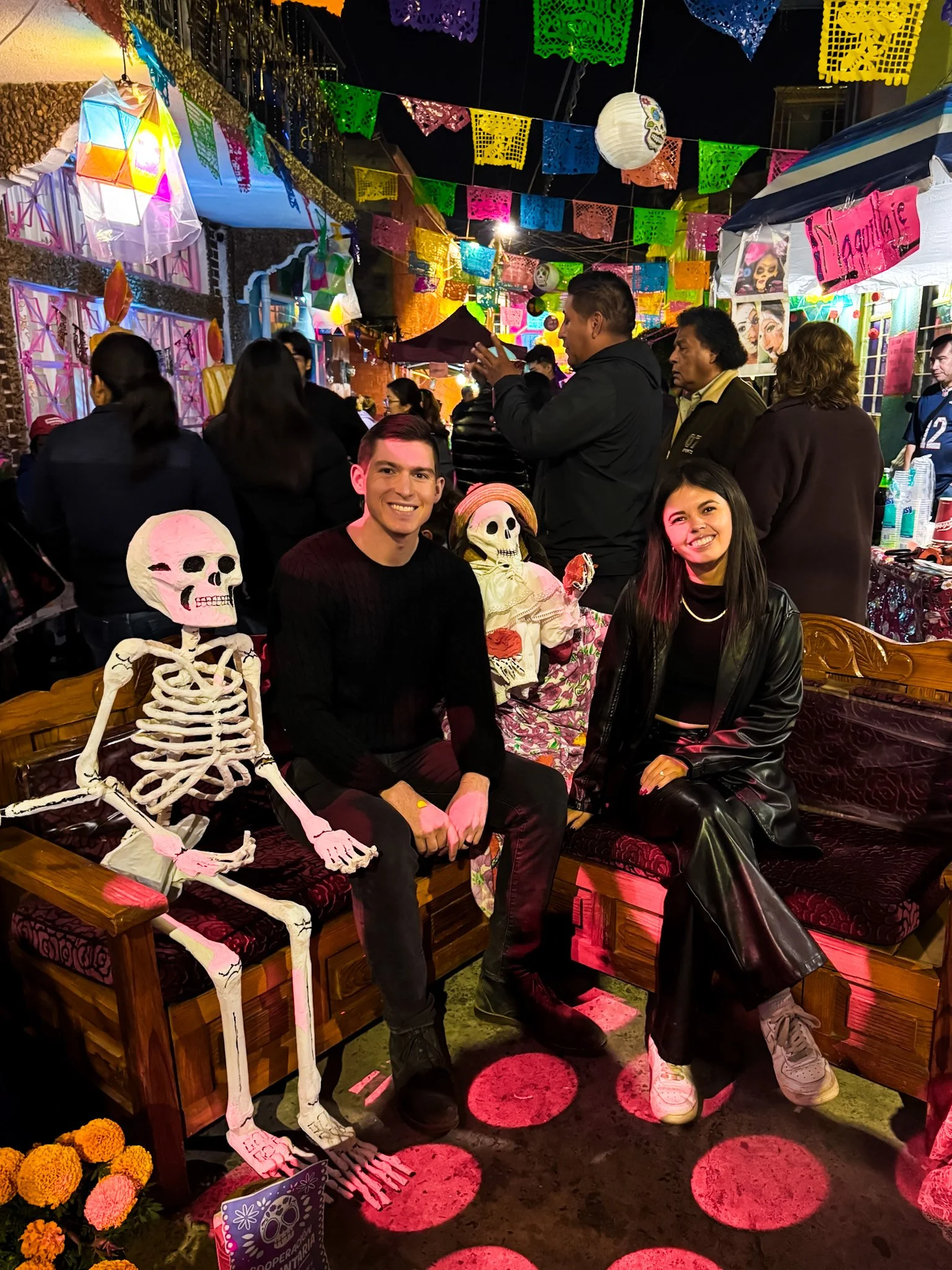 Ofrendas: Altars are displayed throughout town and inside homes. Many families welcome visitors to view them, and tipping is appreciated as a sign of respect.